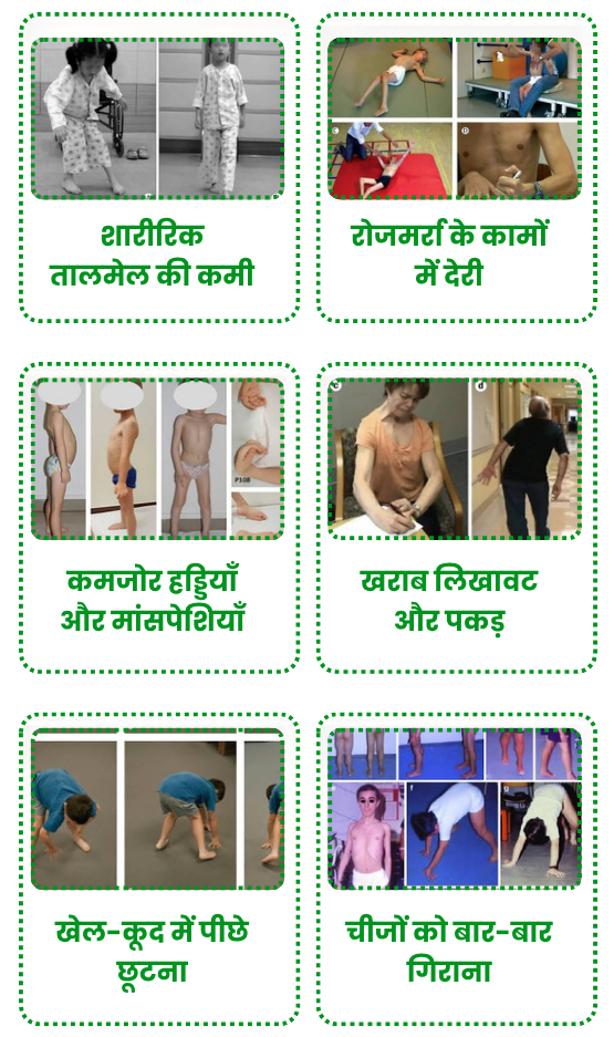 बार-बार गिरना, पेंसिल ठीक से पकड़ न पाना, जूते के फीते बाँधने में दिक्कत या ध्यान की कमी — ये संकेत DMD, Dystonia, Muscular Dystrophy, Epilepsy, Brain Injury, MR या Scissors आदि से जुड़े हो सकते हैं।
